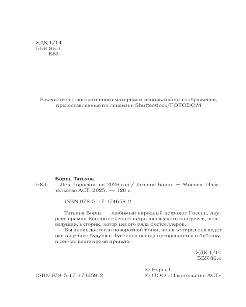💳 Оплатить за товар можно при получении 🇰🇿 Есть бесплатная доставка по Казахстану от 1 дня 🎁 Копите бонусы с каждой покупки Серия: Борщ. Календари 2026 Татьяна Борщ — любимый народный астролог России, лауреат премии Копенгагенского астрологического конгресса, телеведущая, историк, автор целого ряда бестселлеров. |