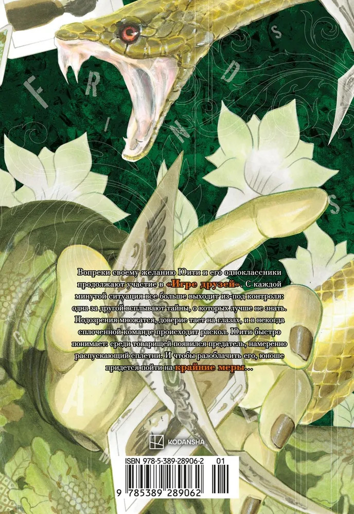 💳 Оплатить за товар можно при получении 🇰🇿 Есть бесплатная доставка по Казахстану от 1 дня 🎁 Копите бонусы с каждой покупки Серия: Графические романы. Манга Вопреки своему желанию Юити и его одноклассники продолжают участие в «Игре друзей». С каждой минутой ситуация все больше выходит из-под контроля: одна за другой всплывают тайны, о которых лучше не знать. Подозрения множатся, доверие тает на глазах, и в некогда сплоченной команде происходит раздор. Юити быстро понимает: среди товарищей затесался предатель, намеренно распускающий сплетни. И чтобы разоблачить его, юноше придется пойти на крайние меры... |