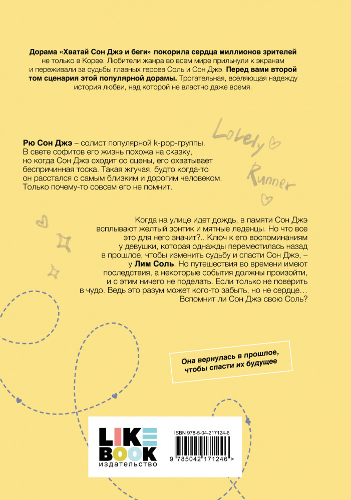 Серия: Dorama club. Хватай Сон Джэ и беги Дорама «Хватай Сон Джэ и беги» покорила сердца миллионов зрителей не только в Корее. Любители жанра во всем мире прильнули к экранам и переживали за судьбы главных героев Соль и Сон Джэ! Перед вами второй том сценария этой суперпопулярной дорамы. Трогательная, вселяющая надежду история любви, над которой не властно даже время.