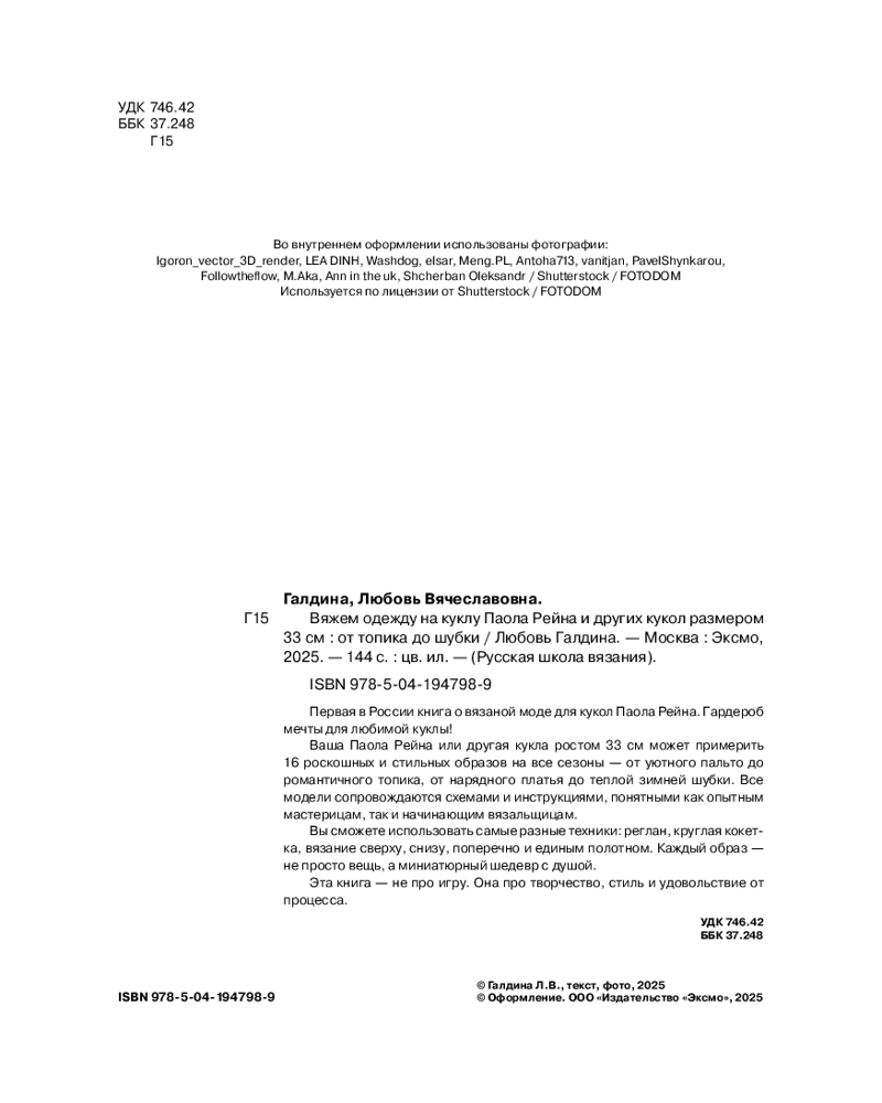 Серия: Русская школа вязания «Говорят, взрослые не играют в куклы. Но кто-то из них создает для них высокую моду». — Любовь Галдина, автор книги и мастер вязания