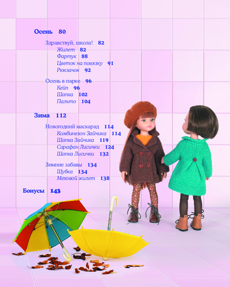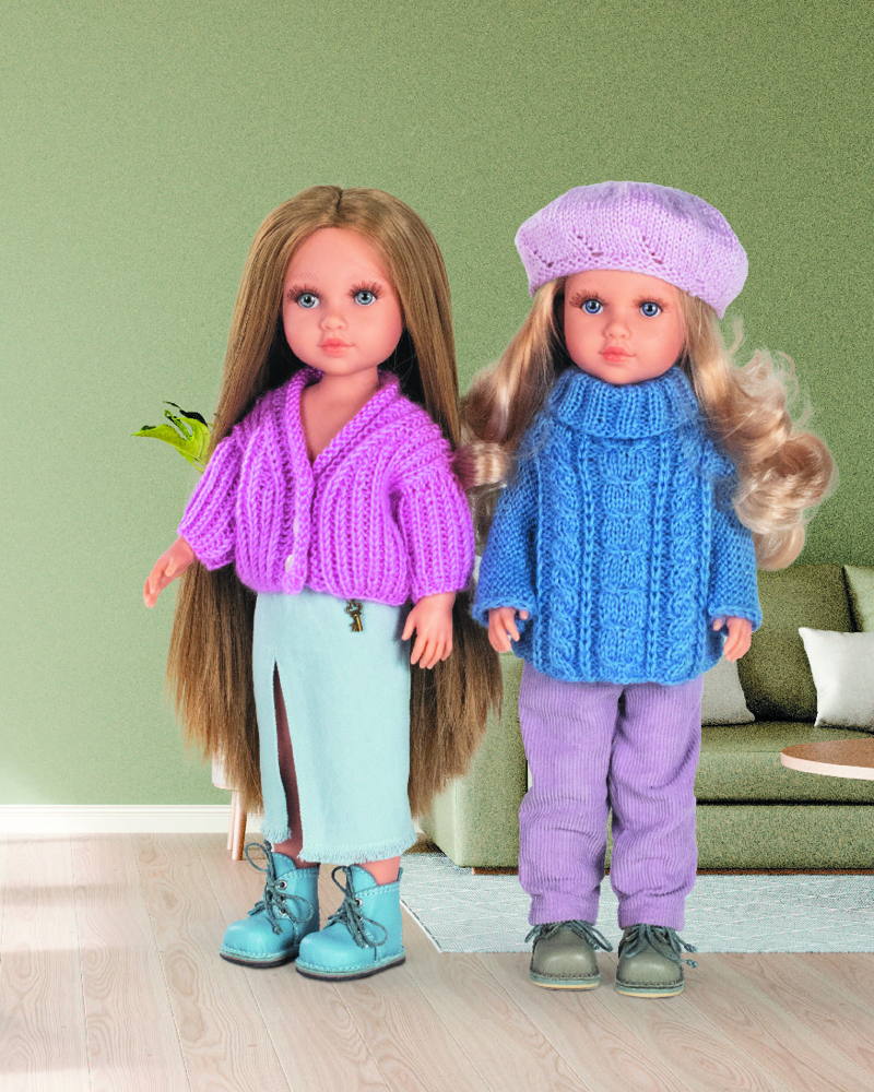 • гардероб для куклы на весь год: пальто, платья, кардиганы, жакеты, шубки, топы и костюмы;