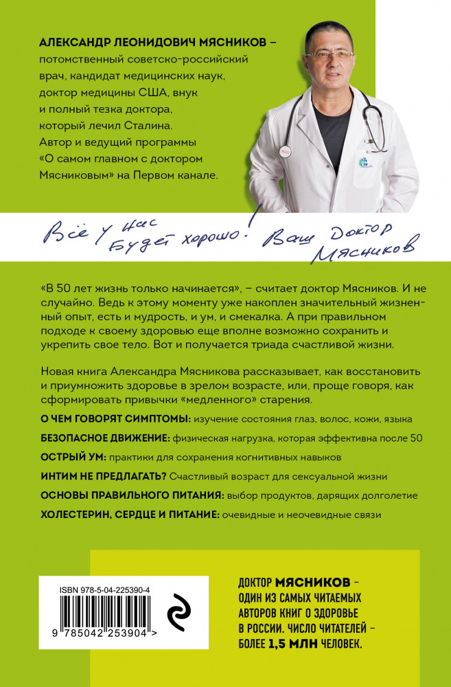 💳 Оплатить за товар можно при получении 🇰🇿 Есть бесплатная доставка по Казахстану от 1 дня 🎁 Копите бонусы с каждой покупки Серия: О самом главном с доктором Мясниковым (обложка) Новая книга Александра Мясникова рассказывает, как восстановить и преумножить здоровье в зрелом возрасте, или, проще говоря, как сформировать привычки «медленного» старения: |