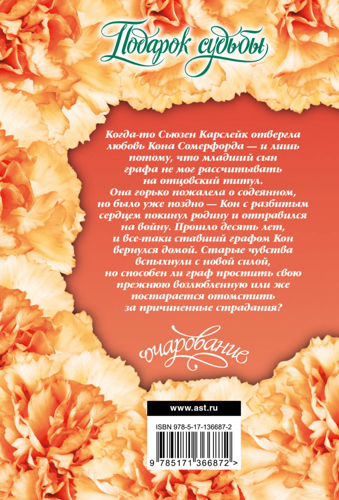 💳 Оплатить за товар можно при получении 🇰🇿 Есть бесплатная доставка по Казахстану от 1 дня 🎁 Копите бонусы с каждой покупки Серия: Очарование(мини)! Когда-то Сьюзен Карслейк отвергла любовь Кона Сомерфорда — и лишь потому, что младший сын графа не мог рассчитывать на отцовский титул. Она горько пожалела о содеянном, но было уже поздно — Кон с разбитым сердцем покинул родину и отправился на войну. Прошло десять лет, и все-таки ставший графом Кон вернулся домой. Старые чувства вспыхнули с новой силой, но способен ли граф простить свою прежнюю возлюбленную или же постарается отомстить за причиненные страдания? |