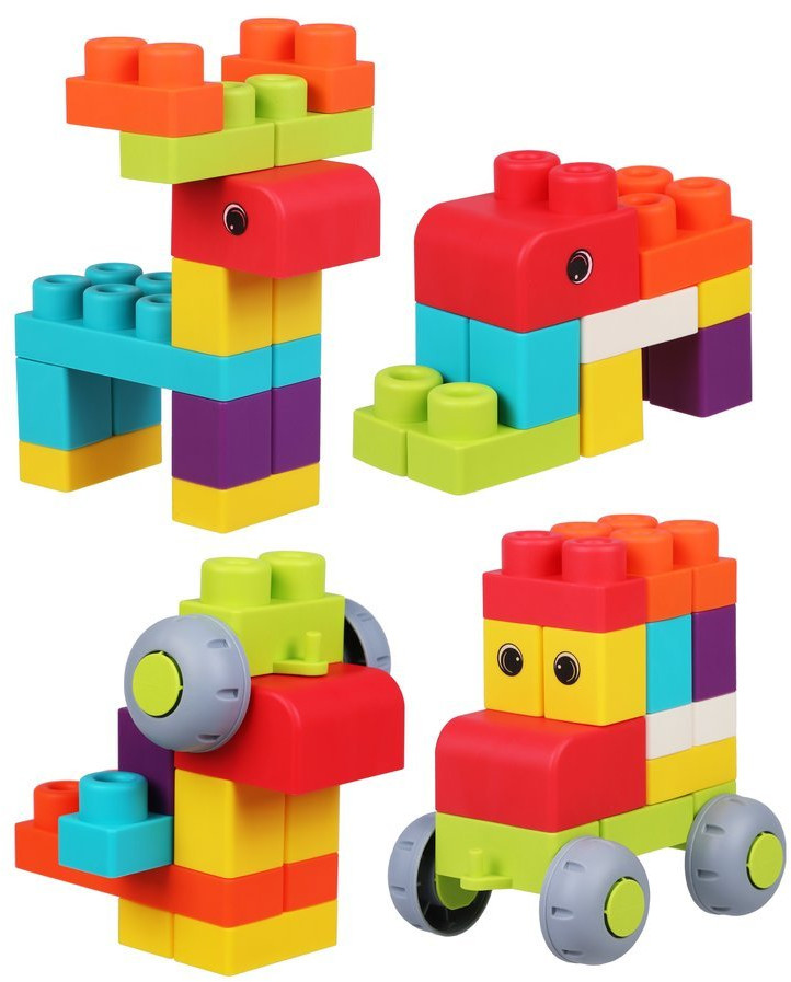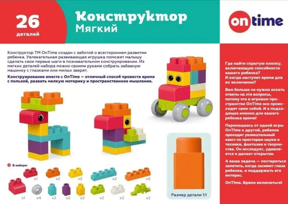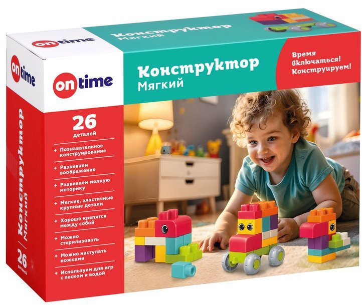 On Time Конструктор блочный мягкийВ данный момент этот товар отсутствует в продаже. Возможно, у нас найдется аналогичный или похожий товар здесь. В детском наборе представлены крупные мягкие блоки из эластичного ПВХ, которые идеально подойдут для малышей от года. Игрушка создана с учетом безопасности — элементы не повредят ножку ребенка даже при случайном наступании, в отличие от обычного пластмассового, деревянного или магнитного конструктора. В комплекте 26 деталей, с помощью которых можно собрать забавную машинку с глазками и колесиками или милых зверят. Блочный мягкий конструктор легко использовать в различных играх, включая водные и песочные развлечения. Благодаря мягкой структуре и удобной форме кубиков и кирпичиков дети смогут развивать моторику и воображение без риска травм. Игрушка подходит как для мальчиков, так и для девочек, стимулируя творческое мышление и координацию движений в игровой форме. Это уникальный первый большой конструктор для малышей от одного года. Огромный бонус для развития мелкой моторики! Детали можно хранить в контейнере (не входит в комплект) или на столе. |
