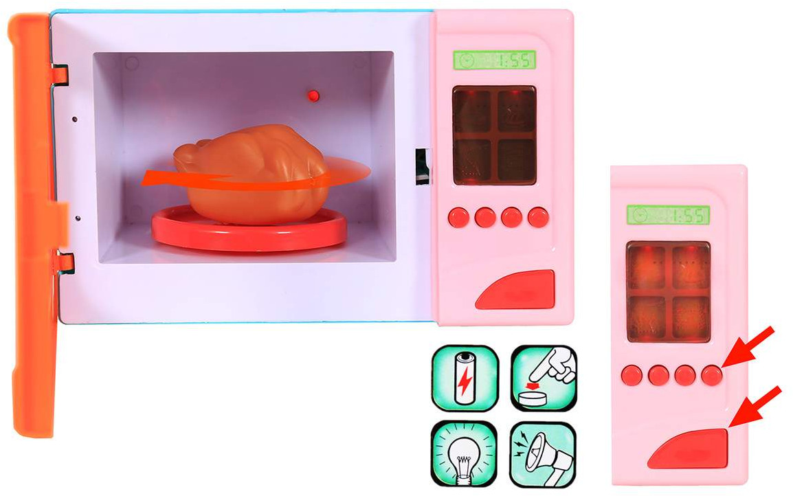 Наша игрушка Микроволновая печьВ данный момент этот товар отсутствует в продаже. Возможно, у нас найдется аналогичный или похожий товар здесь. Игрушечная микроволновая печь познакомит маленькую хозяюшку с первыми предметами быта! В игрушке предусмотрены реалистичные светозвуковые функции. При нажатии на кнопочки загорятся световые индикаторы, а курочка на поддоне начнёт вращаться с характерным для разогревания звуком. Микроволновая печь выполнена в красочной, приятной цветовой гамме. |