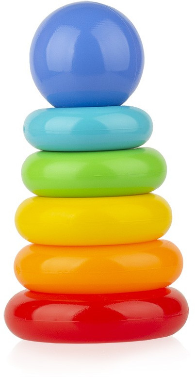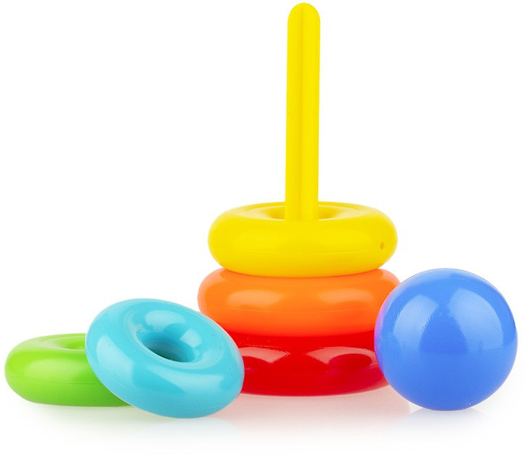 Игра Пирамида 19см — пластмассовая игрушка состоит из стержня, 5 колец разного цвета и наконечника ввиде шара, d нижнего кольца 10,5 см. высота 19 см. Игрушка развивает моторику, координацию, логику воображение. Знакомит ребёнка с цветами, формами.