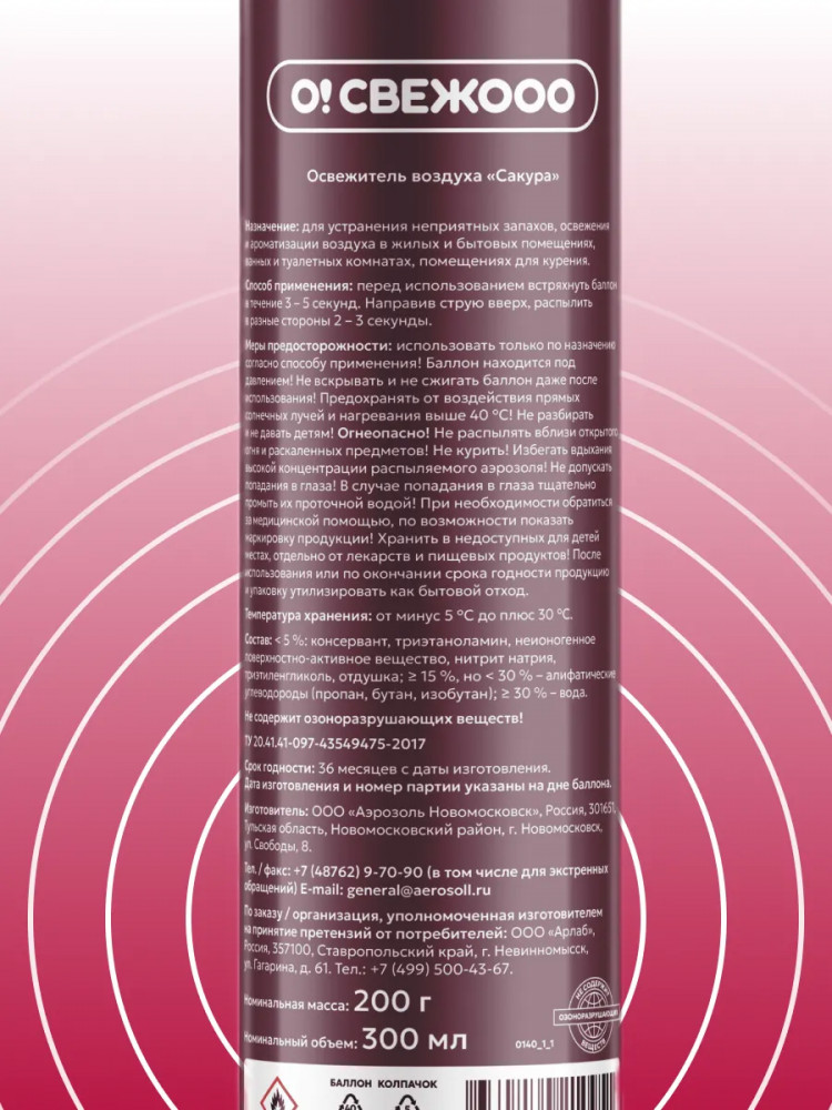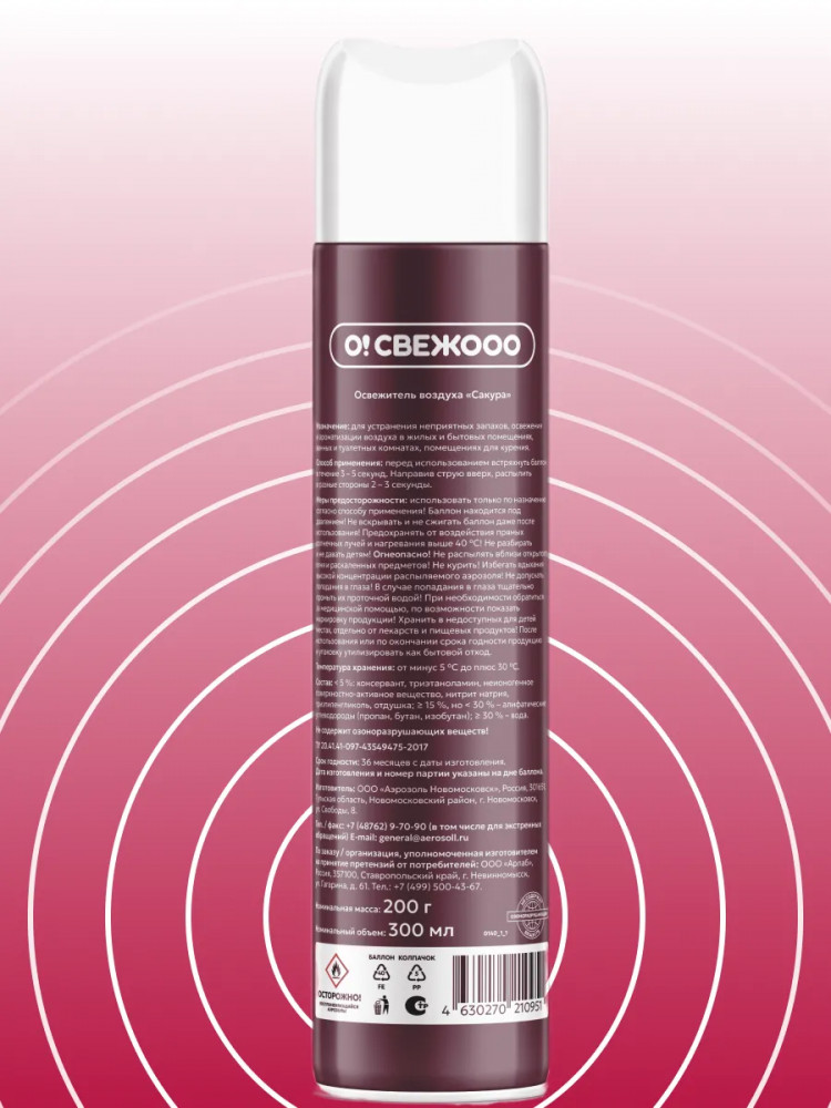 О! Свежооо Освежитель воздуха «Вишня-сакура»