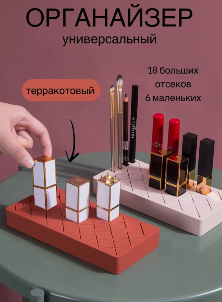 Органайзер для хранения косметики — стильное и практичное решение для вашего туалетного столика. Компактный, но вместительный, он позволит удобно хранить туши, кремы, помады и другие косметические средства. Продуманная форма и несколько отделений обеспечивают порядок и легкий доступ к любимым продуктам. |