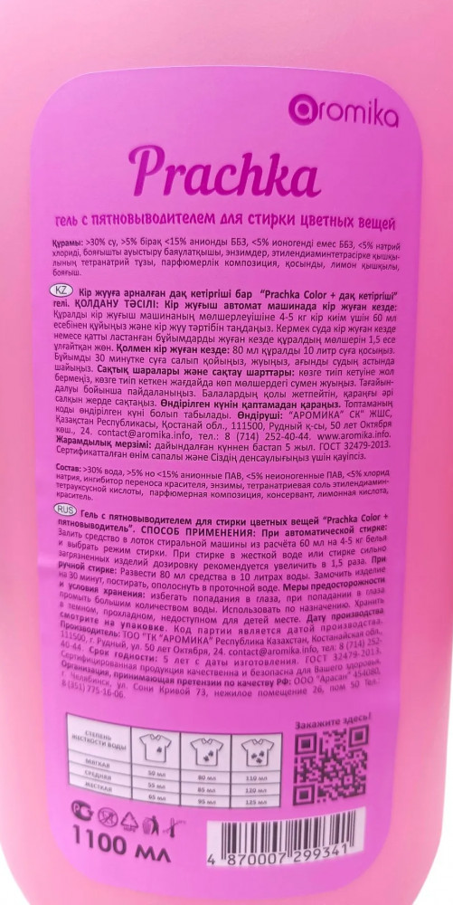 Аромика Гель для стирки цветного белья с пятновыводителем 3 в 1 «Prachka Color»