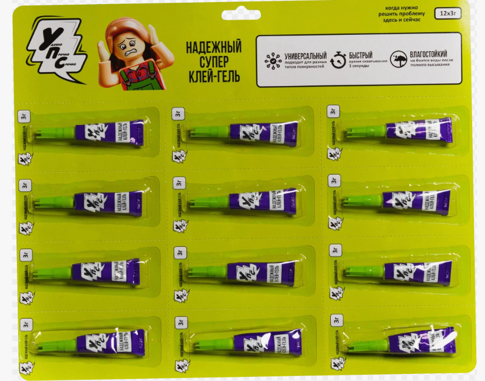| Новое слово в бытовых клеях. «Упс» — яркий, динамичный, эмоциональный, запоминающийся. Веселый персонаж привлекает внимание и сразу говорит «Упс не проблема. Упс — решение.» Творите, чините, развивайтесь вместе с широким ассортиментом клеев «Упс», а если что-то пошло не так, то «Упс» поможет все переделать! |