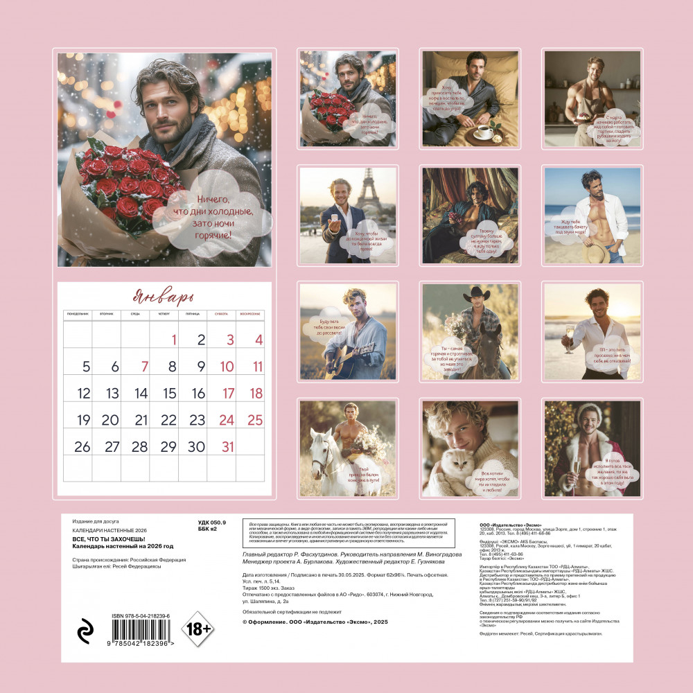Календарь настенный на 2026 год «Все что ты захочешь!»красивый восторг подарила В данный момент этот товар отсутствует в продаже. Возможно, у нас найдется аналогичный или похожий товар здесь. Серия: Календари настенные 2026 (300×300) Наши настенные календари отличаются высоким качеством исполнения! Тщательно подобранные иллюстрации, напечатанные на глянцевой бумаге высочайшего качества, станут настоящим украшением дома, а в календарной сетке найдется место для ваших планов: большие клетки позволят делать записи и организовать свой год! |