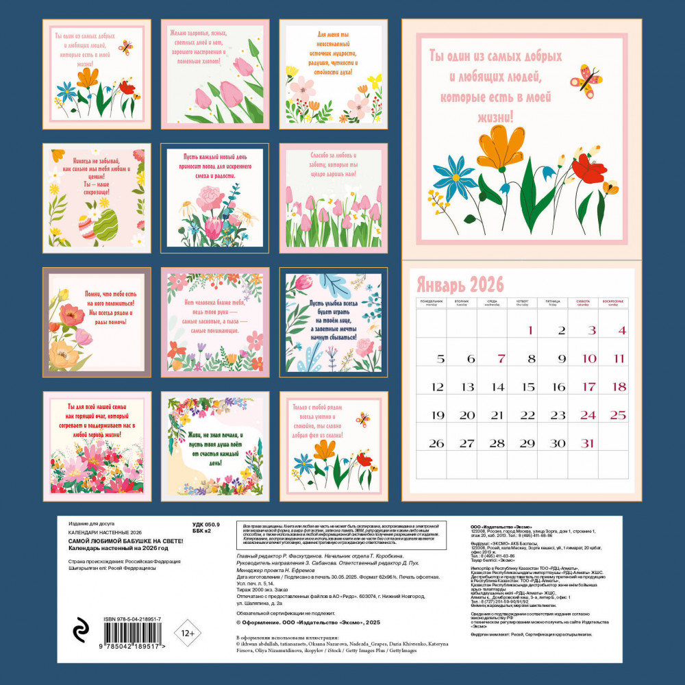 Календарь настенный на 2026 год «Самой любимой бабушке на свете!»-20% +22