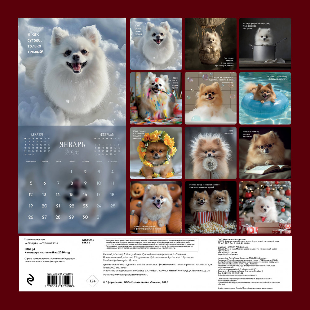 Календарь настенный на 2026 год «Шпицы»В данный момент этот товар отсутствует в продаже. Возможно, у нас найдется аналогичный или похожий товар здесь. Серия: Календари настенные 2026 (300×300) Наши настенные календари отличаются высоким качеством исполнения! Тщательно подобранные иллюстрации, напечатанные на глянцевой бумаге высочайшего качества, станут настоящим украшением дома, а в календарной сетке найдется место для ваших планов: большие клетки позволят делать записи и организовать свой год! |