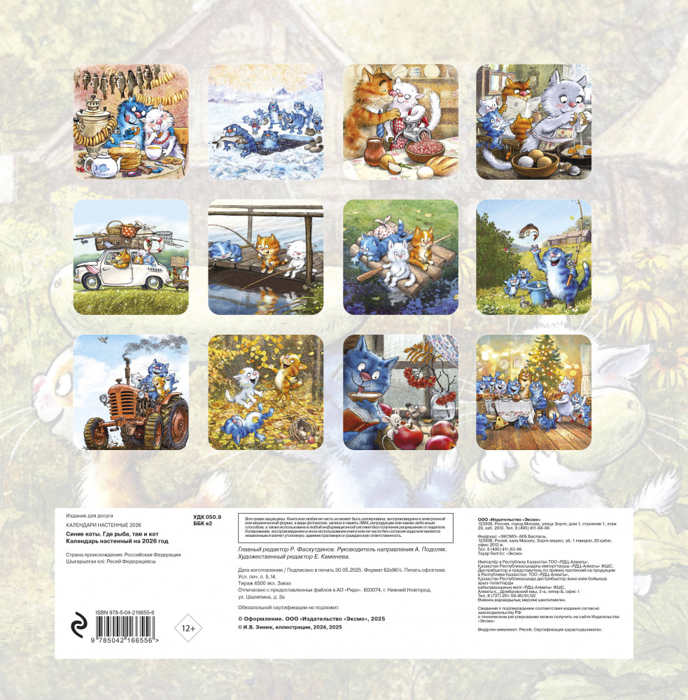 Календарь настенный на 2026 год «Синие коты. Где рыба, там и кот»картинки яркость весёлость В данный момент этот товар отсутствует в продаже. Возможно, у нас найдется аналогичный или похожий товар здесь. Серия: Календари настенные 2026 (300×300) Наши настенные календари отличаются высоким качеством исполнения! Тщательно подобранные иллюстрации, напечатанные на глянцевой бумаге высочайшего качества, станут настоящим украшением дома, а в календарной сетке найдется место для ваших планов: большие клетки позволят делать записи и организовать свой год! |