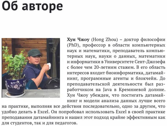 💳 Оплатить за товар можно при получении 🇰🇿 Есть бесплатная доставка по Казахстану от 1 дня 🎁 Копите бонусы с каждой покупки Изучение датамайнинга на примерах и упражнениях позволит вам заглянуть за кулисы сложных методов и научиться эффективно работать с данными. В отличие от большинства специализированных инструментов, которые работают по принципу «черного ящика», Excel позволяет просматривать промежуточные результаты в процессе применения метода и досконально понимать происходящее. Вы узнаете о преимуществах различных подходов машинного обучения на примере данных относительно небольшого объема и научитесь использовать встроенные инструменты Ехсеl для создания визуальных представлений, что поможет вам находить скрытые закономерности в данных. |