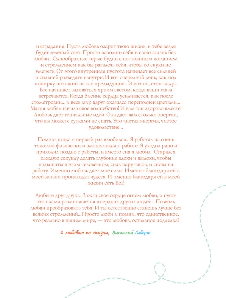 Благодарю Компанию "Flip" за то, что есть возможность покупать книги по доступной цене! Приобрела недавно книгу В. Гиберта. Я довольна книгой. Автор здорово продумал даже то, что не пронумеровал страницы в книге. В данной книге, вы действительно найдете ответы на вопросы которые вас беспокоят. И посмотрите на ситуацию совсем иными глазами. Вот увидите!!!! Возможно не сразу, но ответ придет тогда, когда вы будете к этому готовы. Готовы принять! Мира Вам и понимания!