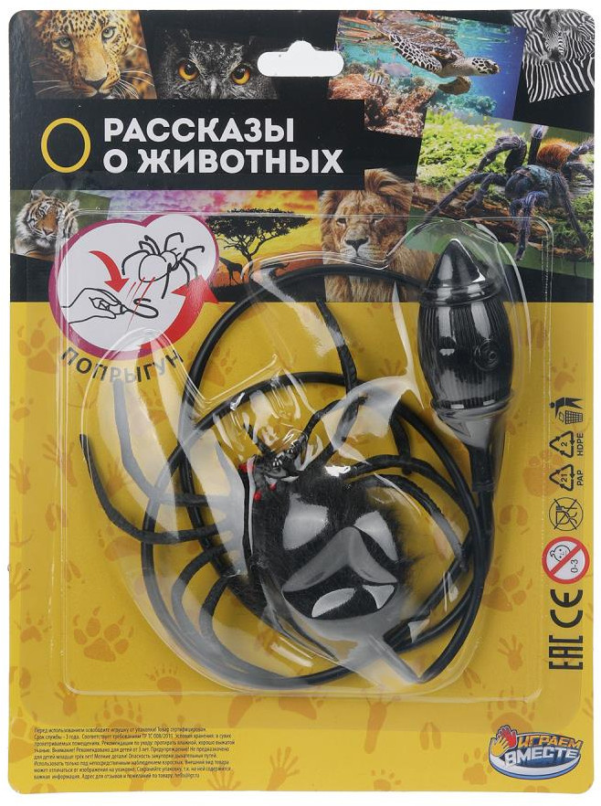 Серия: Рассказы о животных Игрушка-попрыгун «Паук» ТМ «Играем вместе» понравится юным непоседам. Игрушка представляет собой паука с резиновыми лапками, резиновым туловищем, покрытым мягким ворсом, и красными глазками — издалека она выглядит как самый настоящий паук. Особенность попрыгуна заключалась в том, что к нему крепится резиновый шланг, заканчивающийся надувной грушей: при нажатии на грушу, воздух накачивается в резиновое брюшко паука, после чего он начинает забавно подпрыгивать. Каждый прыжок сопровождается при этом весёлым звуком выпускаемого воздуха, что делало игру ещё более увлекательной. Играя с таким попрыгуном ТМ «Играем вместе», ребёнок будет развивать: фантазию, воображение и мелкую моторику. |