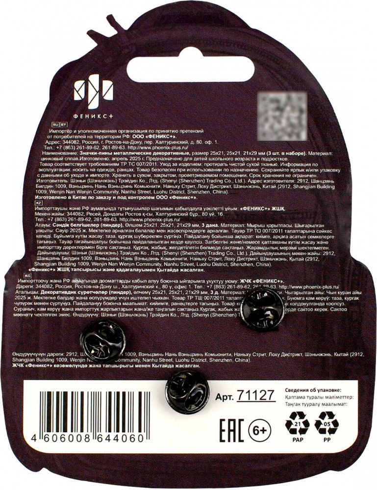 Значки-пины (набор 3 шт.) — стильные мини-аксессуары, которые легко подчеркнут индивидуальность и станут изюминкой вашего образа. Выполненные из прочного металла методом штамповки, они отличаются долговечностью и аккуратностью деталей. Декорированы холодной (мягкой) эмалью, которая придаёт значкам яркость и выразительность. Компактные размеры делают их универсальными — такие пины уместно носить как на одежде, так и на рюкзаке или аксессуарах. Надёжная застёжка-цанга «бабочка» (игла с заглушкой) гарантирует удобство и безопасность в носке. Этот набор станет отличным подарком для коллекционеров значков и всех, кто любит выделяться стильными деталями. |