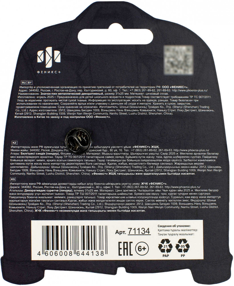 💳 Оплатить за товар можно при получении 🇰🇿 Есть бесплатная доставка по Казахстану от 1 дня 🎁 Копите бонусы с каждой покупки Значок-пин — компактный и стильный аксессуар для тех, кто любит детали с характером. Выполненный из прочного металла методом штамповки, он украшен мягкой эмалью глубокого чёрного цвета, которая подчёркивает лаконичный и современный дизайн. Универсальный размер делает пин уместным как на одежде, так и на рюкзаке, сумке или бейсболке. Надёжная застёжка «цанга-бабочка» (игла с заглушкой) обеспечивает удобное крепление и предотвращает потерю значка. Такой пин станет модным акцентом в повседневном образе или оригинальным подарком для ценителей стильных аксессуаров. |