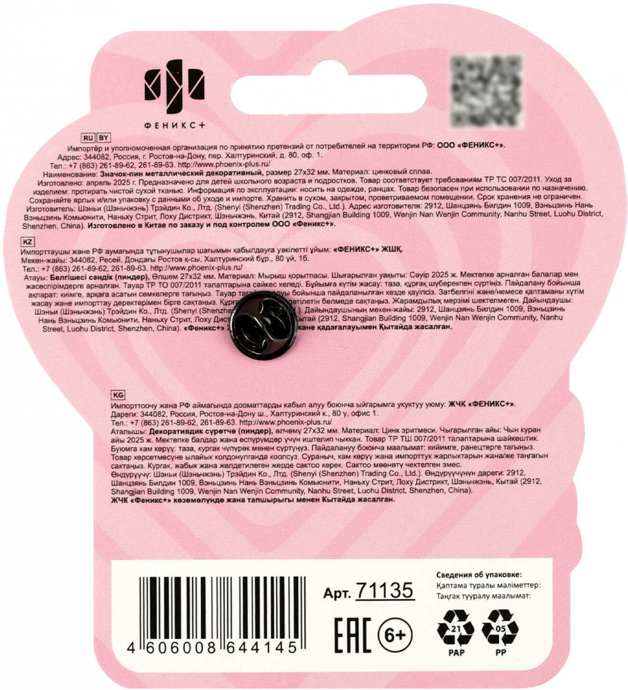 💳 Оплатить за товар можно при получении 🇰🇿 Есть бесплатная доставка по Казахстану от 1 дня 🎁 Копите бонусы с каждой покупки Серия: Котики и друзья Значок-пин — компактный и стильный аксессуар для тех, кто любит детали с характером. Выполненный из прочного металла методом штамповки, он украшен мягкой эмалью глубокого чёрного цвета, которая подчёркивает лаконичный и современный дизайн. Универсальный размер делает пин уместным как на одежде, так и на рюкзаке, сумке или бейсболке. Надёжная застёжка «цанга-бабочка» (игла с заглушкой) обеспечивает удобное крепление и предотвращает потерю значка. Такой пин станет модным акцентом в повседневном образе или оригинальным подарком для ценителей стильных аксессуаров. |