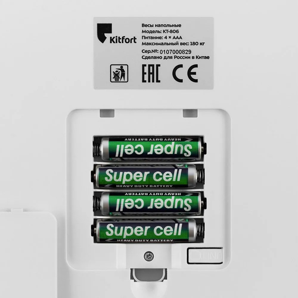 Прорезиненные ножки обеспечивают весам дополнительную устойчивость и предотвращают их скольжение по полу, что гарантирует безопасность во время взвешивания. На обратной стороне устройства находится разъём для батареек. Низкое энергопотребление обеспечивает бесперебойную работу устройства от одного комплекта из двух четырёх AAA. Включение и выключение весов происходит автоматически.