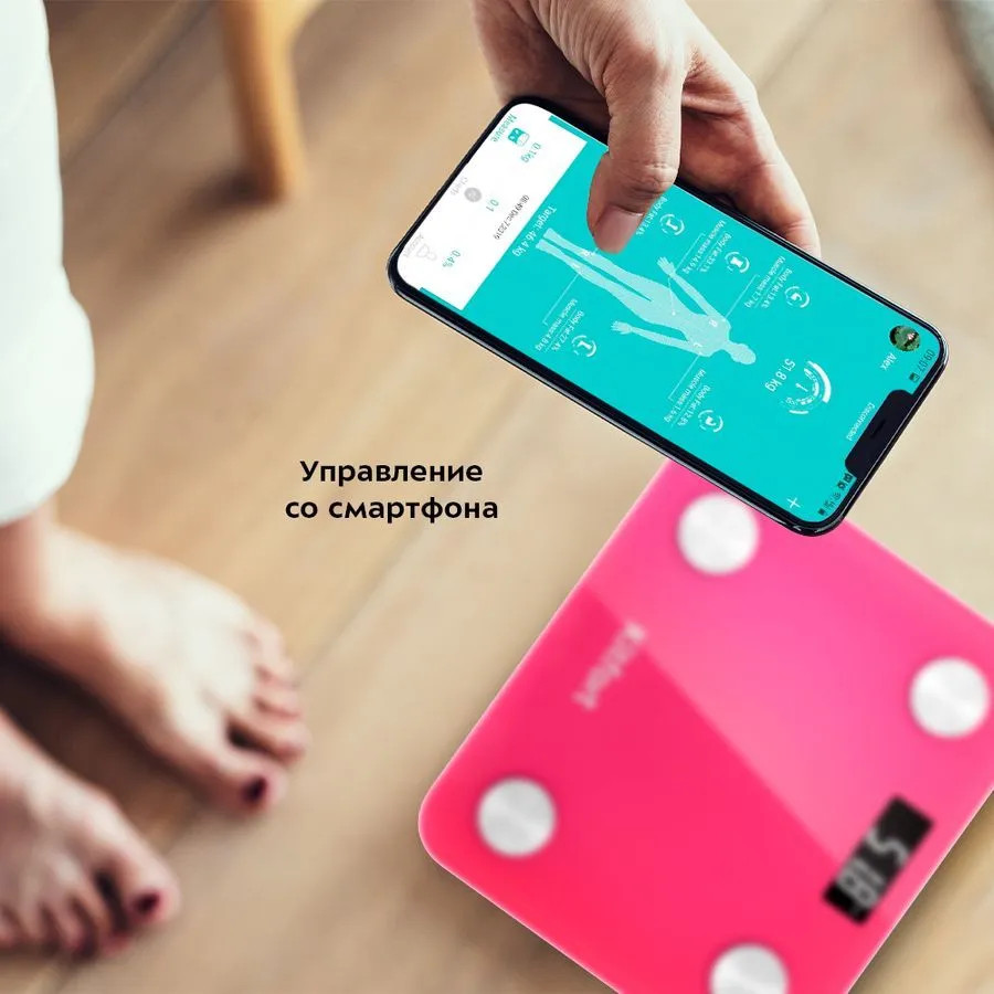 Через 5-10 секунд после взвешивания, в приложении будут показаны параметры вашего тела. Среди них: вес, возраст тела, содержание воды, белка, жира и костной массы в вашем организме, общий баланс вашего тела и многие другие. Весы оснащены жидкокристаллическим дисплеем с крупными цифрами, что делает их использование максимально удобным. Устройство выполнено из закалённого стекла, которое лишь на первый взгляд кажется хрупким: на самом деле оно выдерживает массу до 180 кг.
