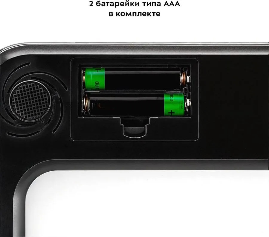 На обратной стороне устройства находится разъём для батареек. Низкое энергопотребление обеспечивает бесперебойную работу устройства от одного комплекта из двух батареек AAA.