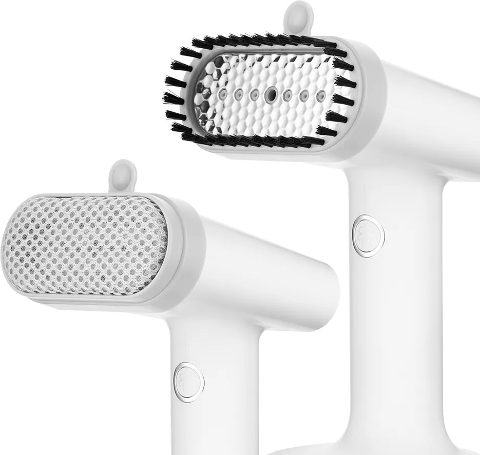 В комплекте с ручным отпаривателем идут 2 насадки. Ворсовая легко чистит загрязнённые поверхности, а также убирает шерсть домашних животных, волосы, ворс. Тканевая насадка необходима при работе с деликатными тканями. В зависимости от вещи, которую необходимо отпарить, можно выбрать слабую или сильную подачу пара. Для этого необходимо нажать на кнопку «вкл/выкл» и дождаться, когда световая индикация сообщит о готовности отпаривателя к работе.