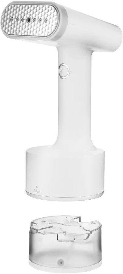Резервуар для воды у отпаривателя съёмный. С помощью мерного стакана, который идёт в комплекте, резервуар легко наполняется водой и устанавливается в корпус прибора. У ручного отпаривателя КТ-962 мощность 1500 Вт — такая же, как у большинства напольных отпаривателей.