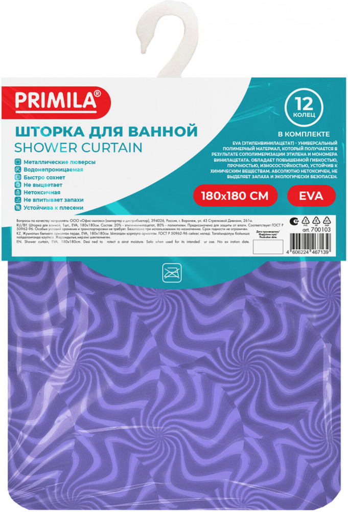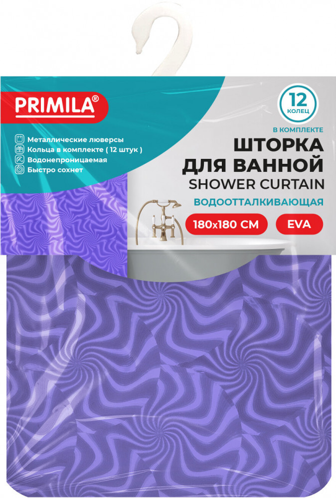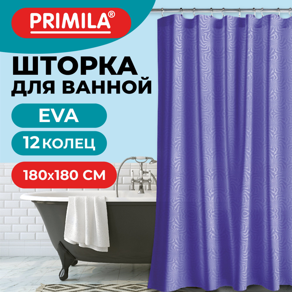 Шторка для ванной комнаты PRIMILA — залог чистоты и уюта ванной комнаты. Используется для защиты пола, стен, мебели и зеркала от брызг. Эта шторка идеально впишется в любой интерьер. Шторка для ванной PRIMILA изготовлена из качественного, практичного, износостойкого, абсолютно нетоксичного материала EVA, что гарантирует отсутствие заломов и водонепроницаемость. Быстро сохнет, не шуршит, без запаха и приятная на ощупь. Шторка максимально проста в уходе — достаточно протереть ее влажной губкой.