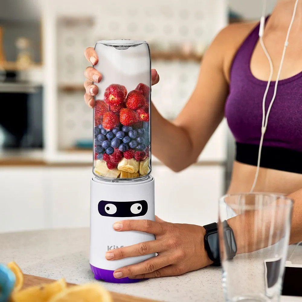 Блендер КТ-3033 сочетает в себе функции двух устройств. Это блендер с функцией Shake & Take и портативной бутылкой, а также кофемолка. Блендер сделает смузи и коктейли, протеиновые смеси. А кофемолка справится с измельчением кофейных зерен, специй. Вы можете поместить бутылку со смузи в сумочку, взять с собой в спортзал или на работу. Она свободно поместится в подстаканник автомобиля.