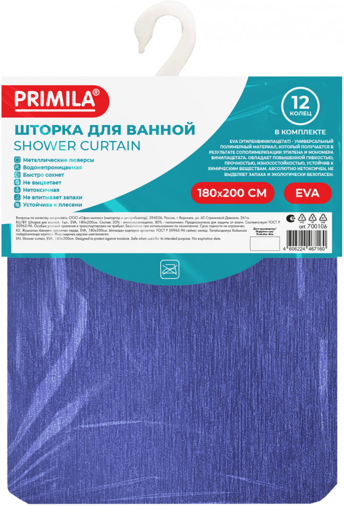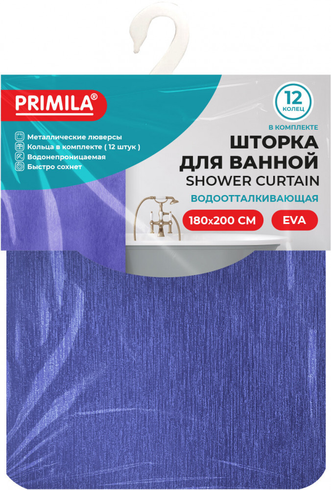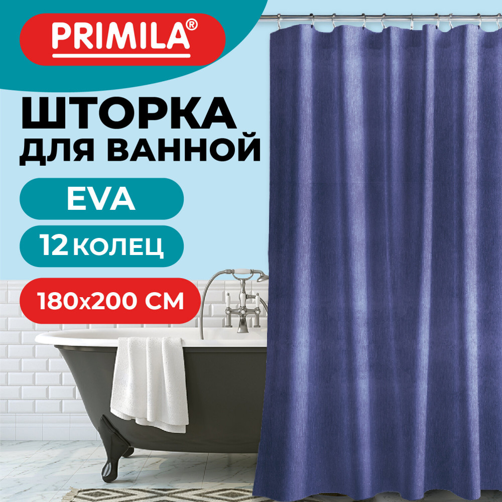 Шторка для ванной комнаты PRIMILA — залог чистоты и уюта ванной комнаты. Используется для защиты пола, стен, мебели и зеркала от брызг. Эта шторка идеально впишется в любой интерьер. Шторка для ванной PRIMILA изготовлена из качественного, практичного, износостойкого, абсолютно нетоксичного материала EVA, что гарантирует отсутствие заломов и водонепроницаемость. Быстро сохнет, не шуршит, без запаха и приятная на ощупь. Шторка максимально проста в уходе — достаточно протереть ее влажной губкой.