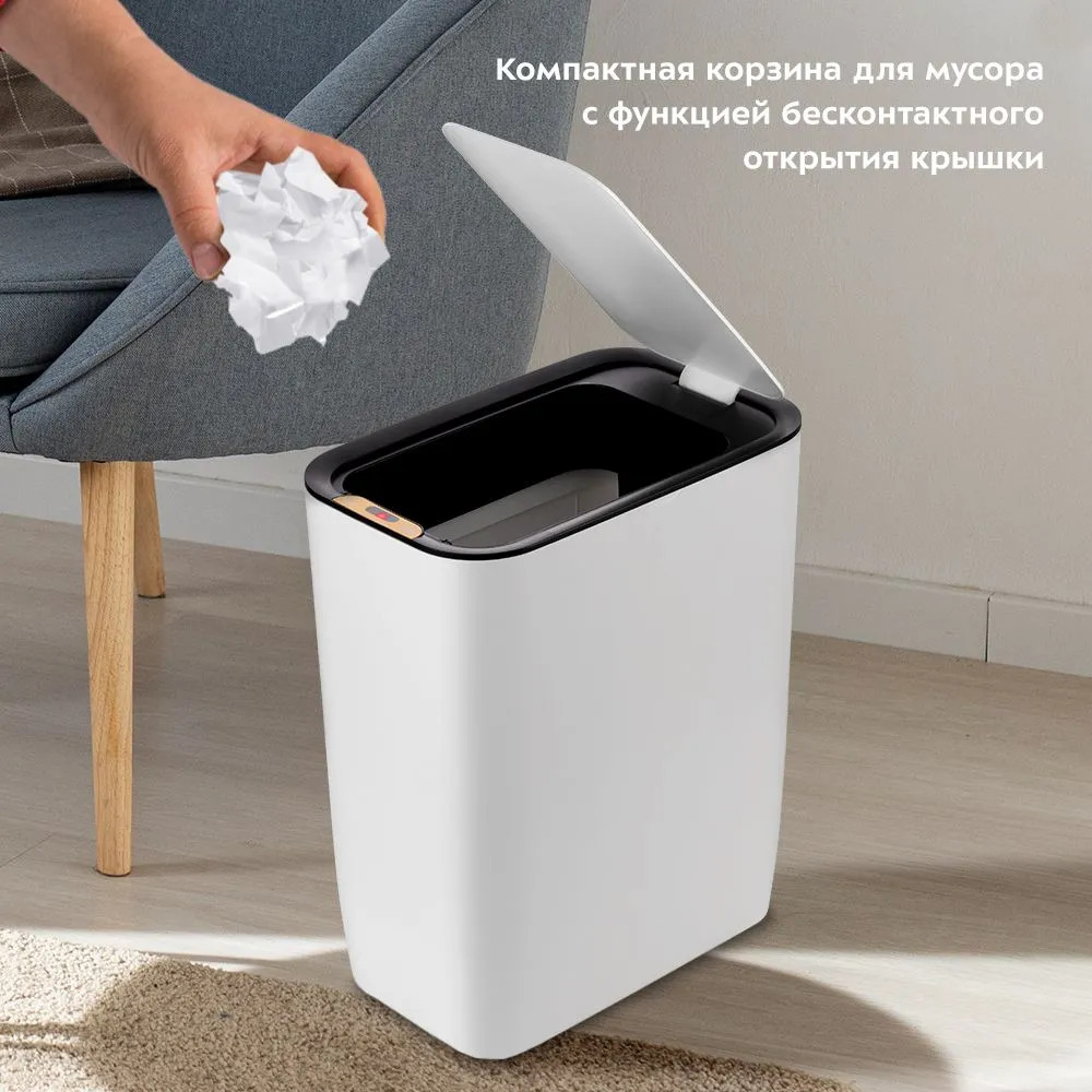 Сенсорное мусорное ведро КТ-6019 — это компактная корзина для мусора с функцией бесконтактного открытия крышки. Его удобно поставить в кабинет, в комнату или в санузел, чтобы выбрасывать мелкий мусор. Сенсорное мусорное ведро оснащено инфракрасными датчиками. Такое ведро открывается и закрывается автоматически и его не нужно касаться при выбрасывании мусора. Датчики ведра КТ-6019 расположены на крышке сверху. Через 5 секунд крышка закрывается.