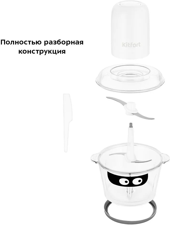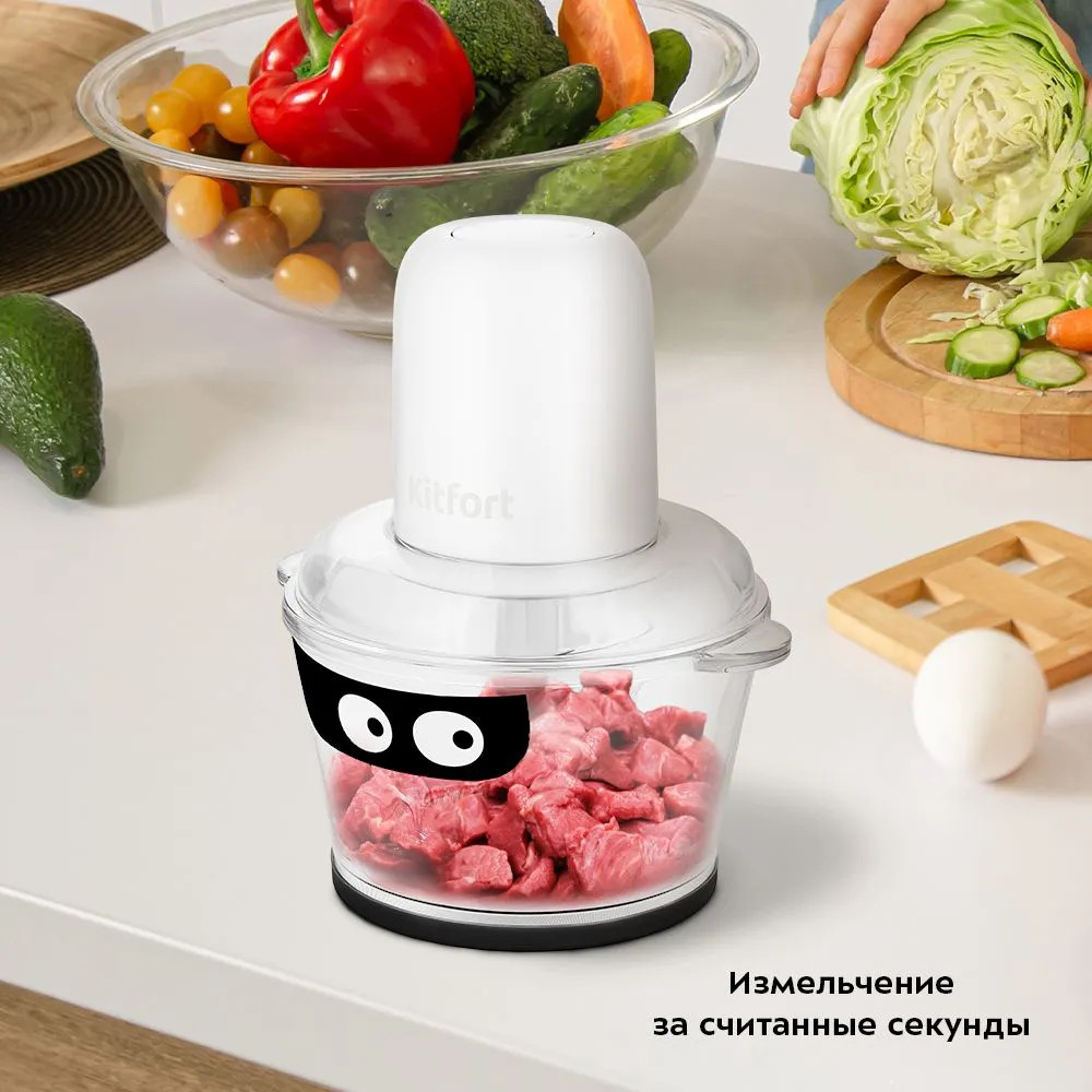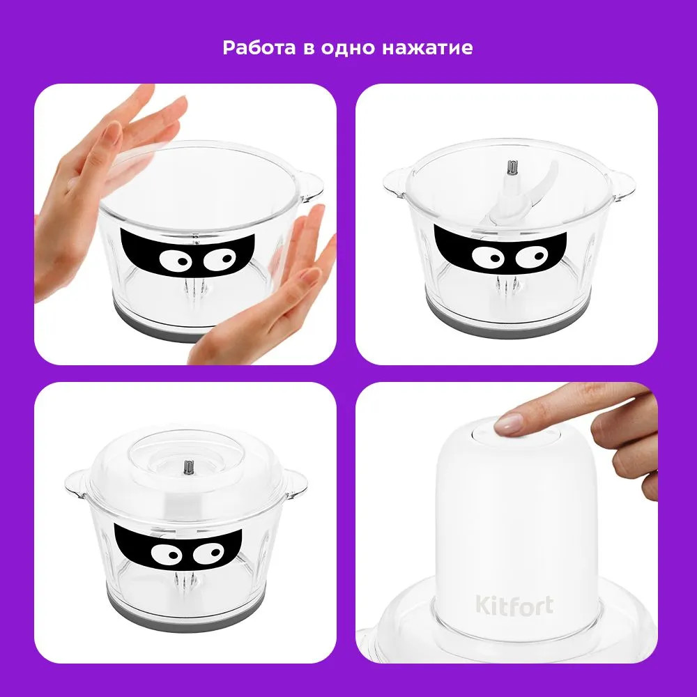 Измельчитель Kitfort КТ-3519 быстро измельчает мясо, твёрдый сыр, овощи, травы, чеснок, ягоды. Он исключает ваше участие в процессе измельчения, обеспечивая безопасность и экономию времени. Готовить блюда можно гораздо быстрее даже в больших объёмах. Сборка измельчителя занимает всего пару минут. Управление прибором осуществляется с помощью двух кнопок, расположенных в верхней части моторного блока. Для обеспечения безопасности КТ-3519 может работать только с установленным моторным блоком.