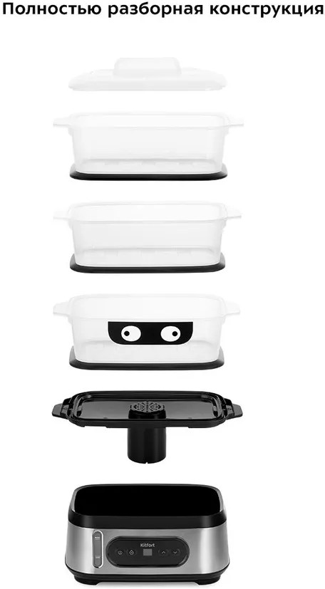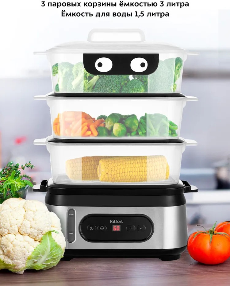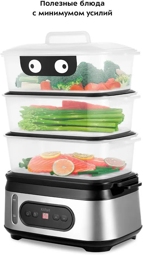 Пароварка Kitfort КТ-4082 оставила очень приятное впечатление. Порадовал качественный материал чаш — прочный и безопасный, что особенно важно для приготовления еды. Чаши легко мыть. Удобная функция отсроченного старта позволяет легко планировать процесс готовки на будущее. Отдельный плюс — компактный размер: пароварка не занимает много места и отлично вписывается даже в небольшую кухню. Практичное решение для тех, кто ценит комфорт и умные детали.