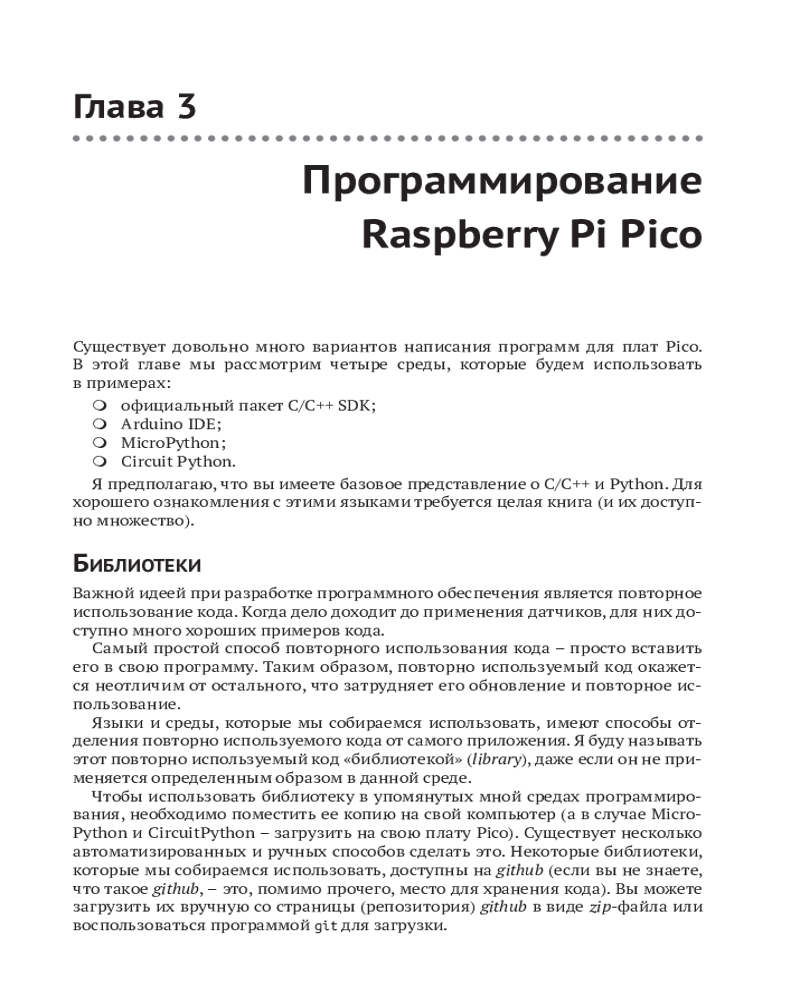 💳 Оплатить за товар можно при получении 🇰🇿 Есть бесплатная доставка по Казахстану от 1 дня 🎁 Копите бонусы с каждой покупки Из книги вы узнаете о современных датчиках и о множестве способов, которыми они могут передавать данные на микроконтроллер. Вы также познакомитесь с типичными стратегиями получения надежных данных, подробно изучите ресурсы, доступные на мощной и недорогой плате Raspberry Pi Pico для подключения датчиков, и научитесь использовать их при программировании на C/C++, MicroPython и CircuitPython. |