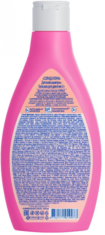 Солнце и луна Шампунь-бальзам для девочек «Я у мамы сладкая клубничка»