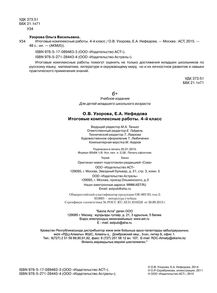 💳 Оплатить за товар можно при получении 🇰🇿 Есть бесплатная доставка по Казахстану 🎁 Копите бонусы с каждой покупки Итоговые комплексные работы помогут оценить не только достижения младших школьников по русскому языку, математике, литературе и окружающему миру, но и их личностное развитие и навыки практического применения знаний. |