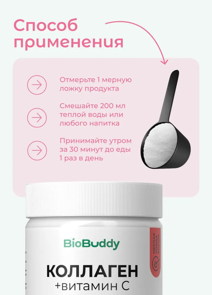 Collagen peptides от BioBuddy — ваша поддержка суставов, связок, кожи и молодости — в одной порции.