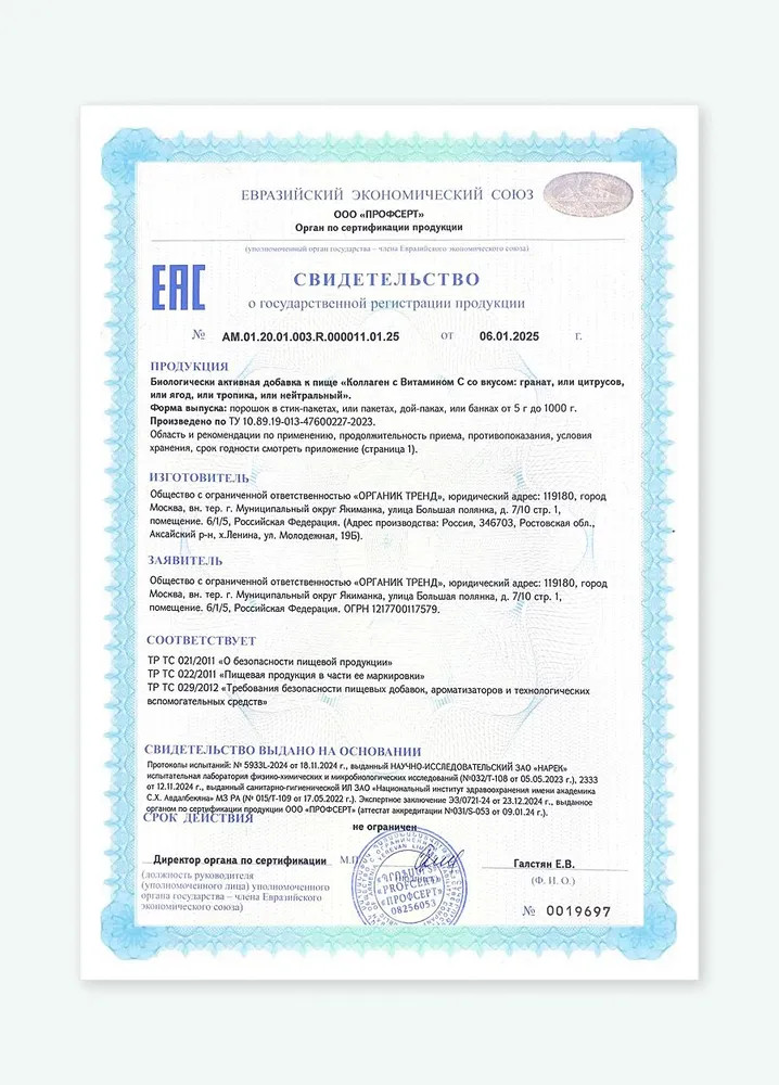 С возрастом синтез природного белка замедляется — уже после 25 лет появляются первые морщины, снижается эластичность кожного покрова и гибкость суставов. Пищевой коллаген для кожи лица, волос и связок помогает восполнить дефицит, поддерживая здоровье изнутри (Anti-Age эффект). Продукт также отлично подойдет для тех, кто придерживается принципов правильного питания, тренируется или восстанавливается после нагрузок.