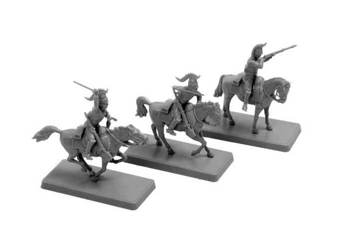 Комплектация: 3 драгуна на лошадях, 3 подставки, инструкция по сборке.