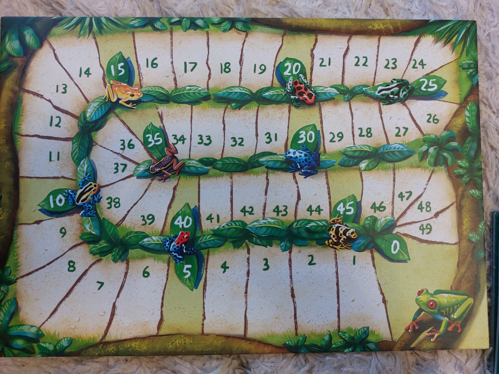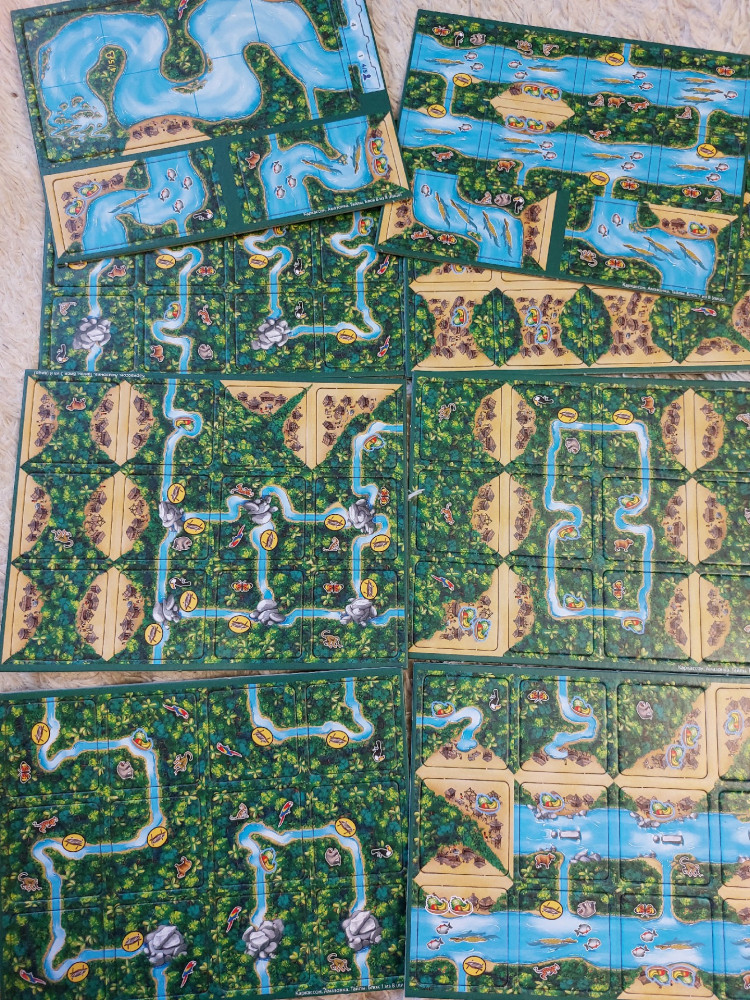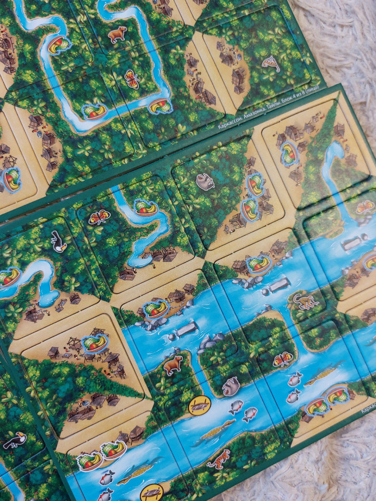 Ещё не играли, но наполнение игры очень понравилось. 8 планшетов с тайлами, поле для очков, фишки для игры и инструкция.