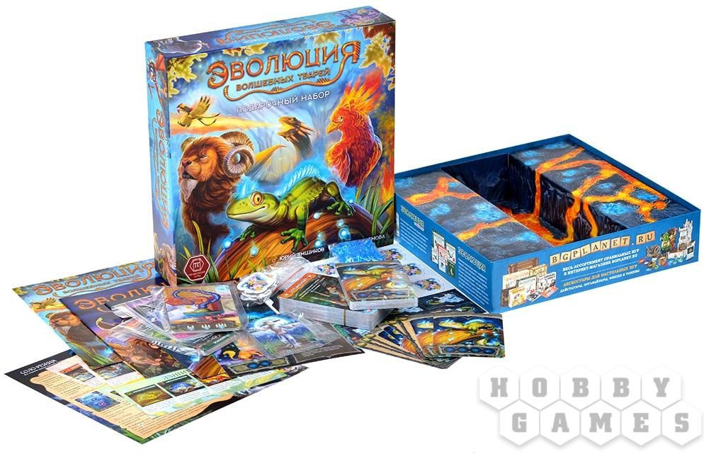 В этой коробке живут удивительные твари — саламандры и драконы, ярги и феи, всем известные грифоны и редкие шляпочники. Поведение и способности этих созданий необычны, но все они развиваются по законам эволюции. В волшебном мире достаточно пищи для всех, поэтому главной целью для тварей стал поиск чистой магической энергии. Эта чудесная субстанция производится редкими растениями и местностями. Твари собирают кристаллы энергии, отнимают их у других или добывают иными способами. Накопив 4 кристалла, существо может трансмутировать и переместиться на следующий пласт мироздания. В подарочном наборе собраны все волшебные существа! В комплекте есть базовый набор и много фантастических дополнений.