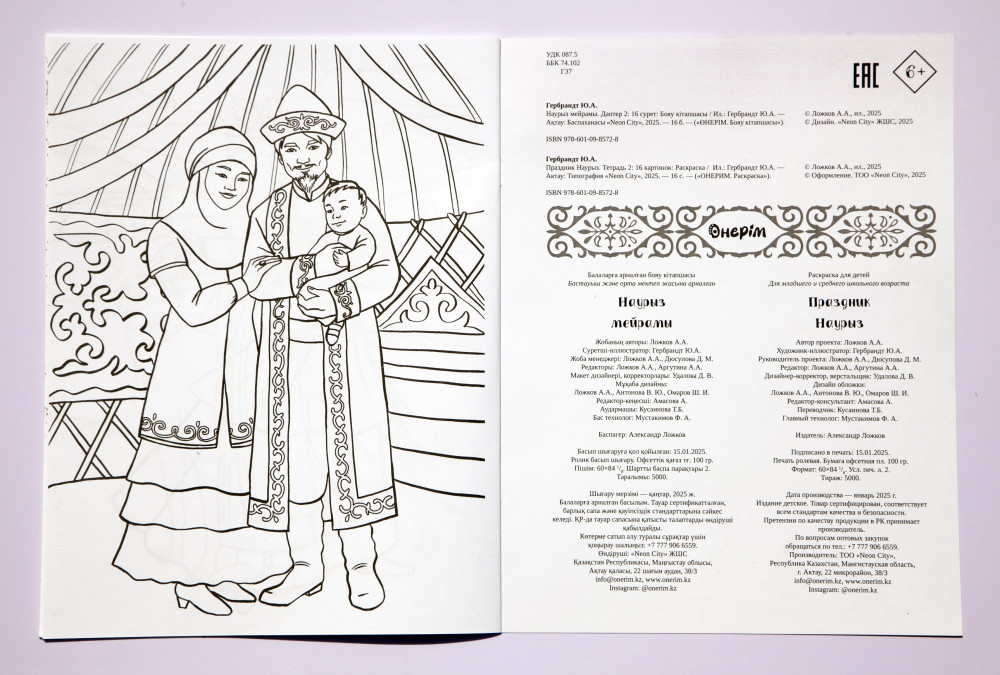 В раскраске Өнерім вы найдете красивые узоры, орнаменты, элементы народного творчества, искусства, архитектуры. Книга предназначена как для детей, так и для взрослых — всех, кто хочет познакомиться с богатым культурным наследием Казахстана, а также для любителей раскрашивания, ищущих что-то особенное и уникальное. |