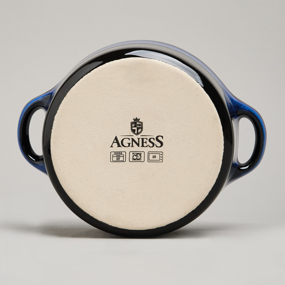 ТМ Agness предлагает новую коллекцию керамических форм для запекания, покрытых реактивной глазурью. Этот вид глазури придает изделиям уникальный и неповторимый вид, создавая яркие и живые цвета, необычные эффекты и многослойные текстуры. Именно керамическая посуда — это идеальный выбор для приготовления и подачи блюд. Она долго сохраняет тепло после разогрева, может держать еду в тепле вне духовки, и блюда в ней готовятся равномерно. Помимо этого у керамических форм очень привлекательный вид, и они могут стать элементом сервировки стола.