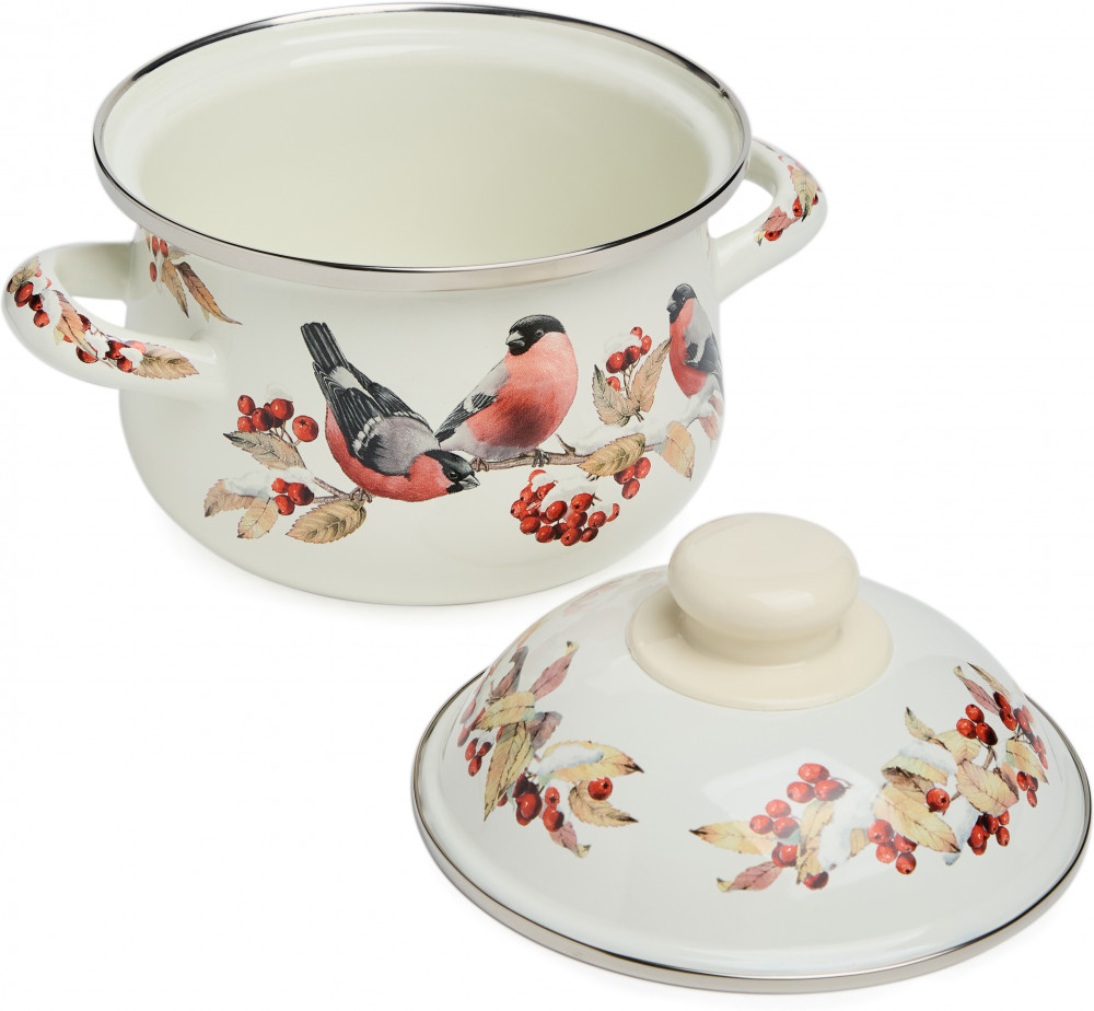 Agness Кастрюля с крышкой «Лесная сказка. Снегири»