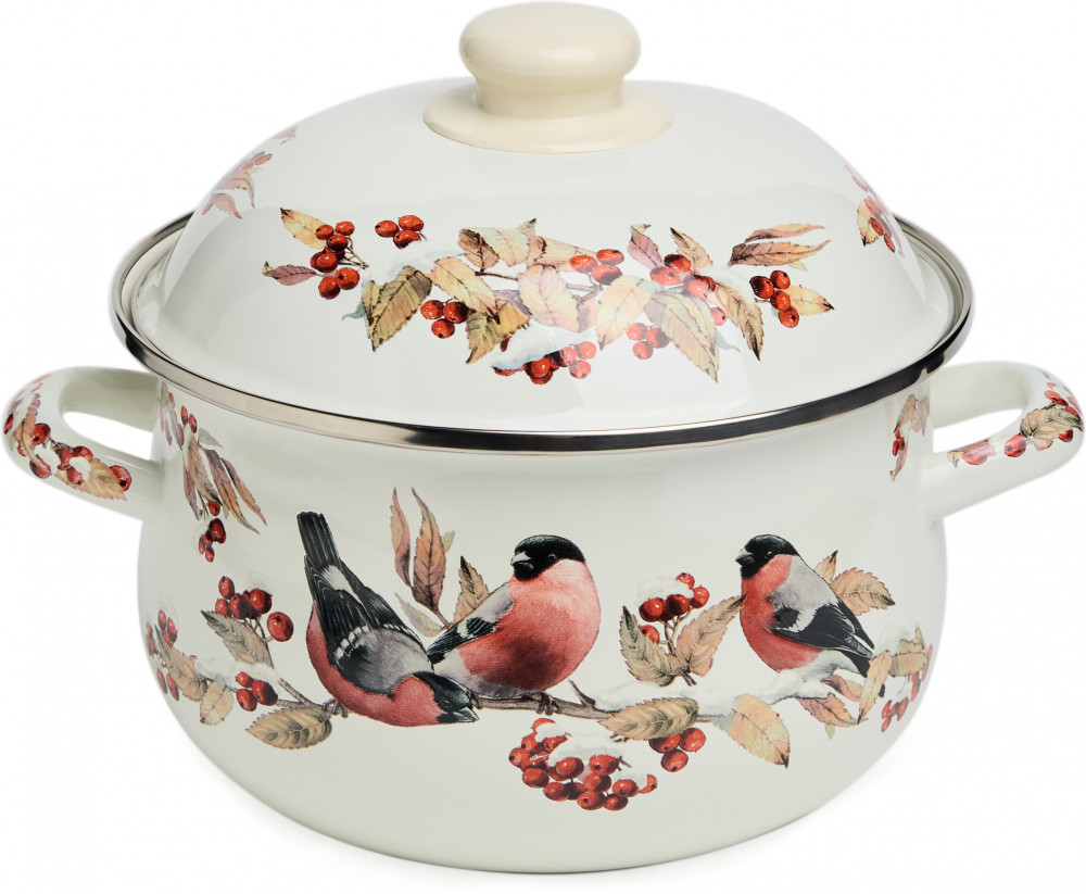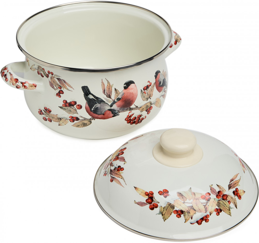 Agness Кастрюля с крышкой «Лесная сказка. Снегири»