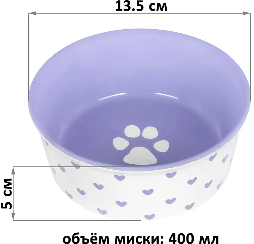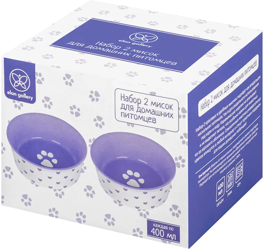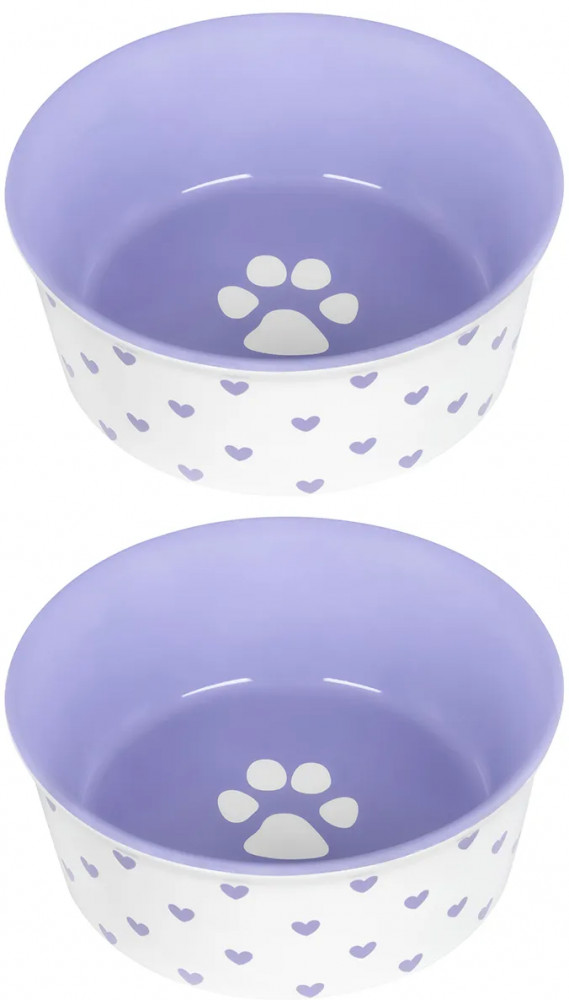 Elan Gallery Набор мисок для домашних питомцев «Лапка на сиреневом и сердечки»
