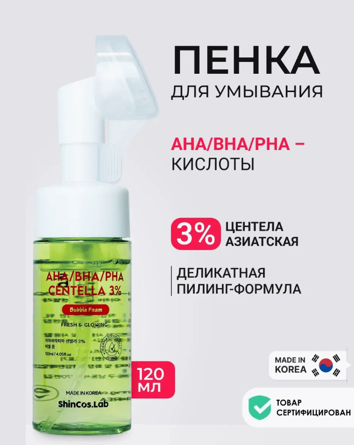 ShinCos.Lab Пенка-мусс для умывания «AHA/BHA/PHA Centella 3% Bubble Foam»
