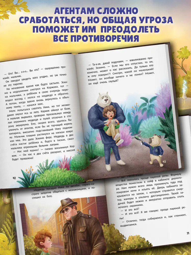 💳 Оплатить за товар можно при получении 🇰🇿 Есть бесплатная доставка по Казахстану 🎁 Копите бонусы с каждой покупки Серия: Детский детектив Агент Эскимо был преисполнен энтузиазма и решимости, получив первую миссию. Он был уверен, что его новый напарник станет не только надёжным товарищем по службе, но и настоящим другом. Эскимо представлял, как будет отважно сражаться бок о бок с таким же, как он, большим и сильным белым медведем! А после успешного завершения миссии они с напарником будут вместе пить чай, обсуждать приключения и, конечно, станут дружной непобедимой командой. Но мечты агента разбиваются вдребезги, когда он узнаёт, что ему предстоит работать с маленьким, ворчливым и саркастичным... мопсом! |